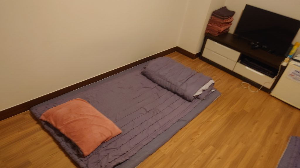 غرف النوم عبارة عن غرف خاصة مزودة بحصائر بسيطة (مثل تلك الموجودة أدناه، ومعظمها نظيفة) ويمكنك النوم فيها مع الزبائن الآخرين. وعلى الرغم من أنهم قد يأتون أو لا يأتون، إلا أن المدلكين (ربما ما نسميه المدلكين الحقيقيين) يتناوبون على الغرف بالتناوب ويقومون بالتدليك للزبائن الذين يرغبون في ذلك. العديد من المدلكين مكفوفين، لذلك إذا دخلوا إلى الغرفة (الأشخاص ذوي الإعاقة البصرية حساسون للغاية للصوت، لذا إذا ناديت عليهم فغالباً ما يكونون يمكنهم التعرف على مكانك في الغرفة).