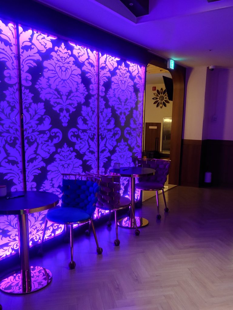 بعد أن تحركت لفترة من الوقت، سحبت قضيبي ونزعت الواقي الذكري ودخلت إلى غرفة مجاورة. على الرغم من أنها كانت تسمى غرفة، إلا أنه لم يكن هناك باب، وكانت شعرت أنها مساحة متصلة بالرواق (جميع طوابق النادي هكذا). عندما دخلت الغرفة، سئلت: “مرحبًا، هل تريدين سيجارة؟” وعندما أجبت بـ “لا”، سألتني “ فأجبتها ”نعم.“ فأخرجت أنيو سيجارة وأشعلتها، ثم سألتني أسئلة باللغة الإنجليزية بلغة broken وباستخدام تطبيق للترجمة، مثل ”من أين أنت؟“ و ”منذ متى وأنت في سيول؟ “ و ”منذ متى وأنت في سيول؟”