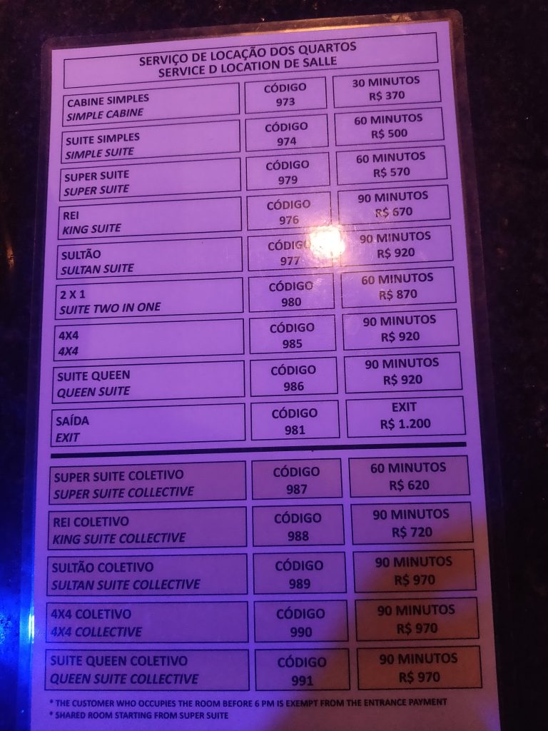 La entrada y una bebida costaban 96 BRL (reales brasileños), y 30 minutos de juego, incluido el precio de la sala, 370 BRL. El total ascendió a 466 BRL (unos 85 USD).