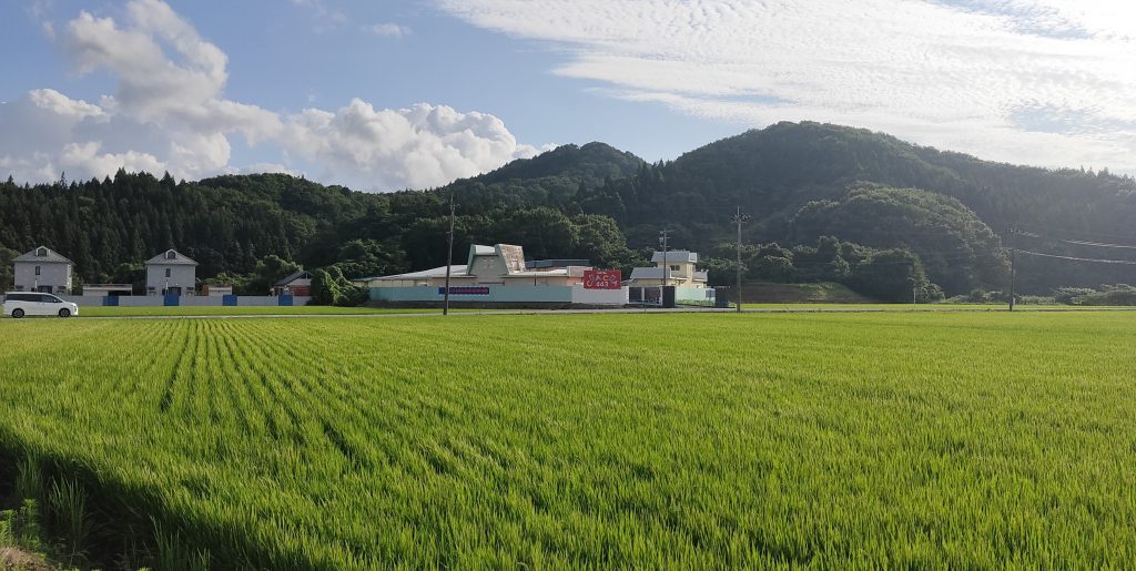 お店に予約を入れて、予約時間の30分ほど前に市内のラブホテルへと車で向かいます。土地勘のない場所だったので、ネットで調べて出てきたホテルの住所をナビに入れてその通り進んでいきます。ナビのマップ上で近づいてきても、あたりは田んぼと山ばかり・・・本当にこんなところにラブホなんてあるの?と思っていたところ田んぼの向こう側に、1階建ての建物が密集しているラブホテルらしき建物を発見。目の前は田んぼ、背景は山。こんなのどかな場所にラブホテルが建つ風景はある意味風情がありますね。