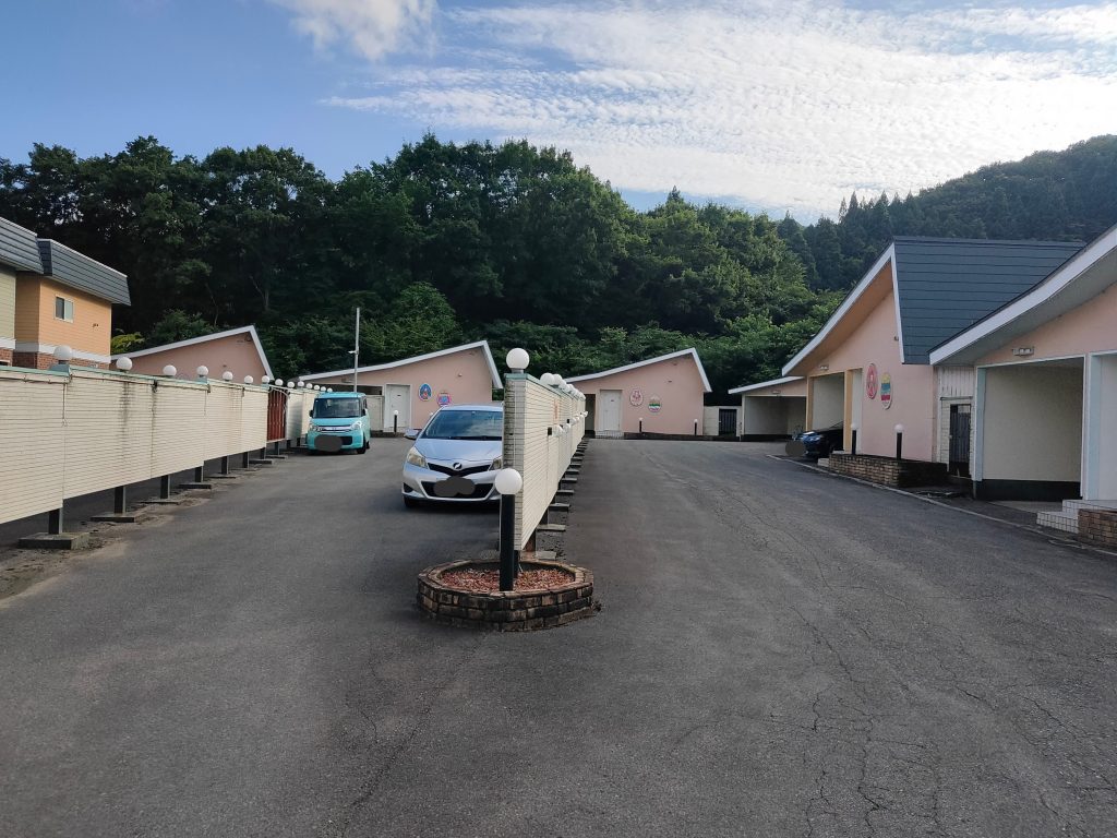 ラブホテルは、部屋が1棟1棟分かれているコテージタイプ。コテージの脇にある駐車場に車を停め、部屋に入室。入室後、お店に電話をしてホテル名と部屋番号を伝えます。